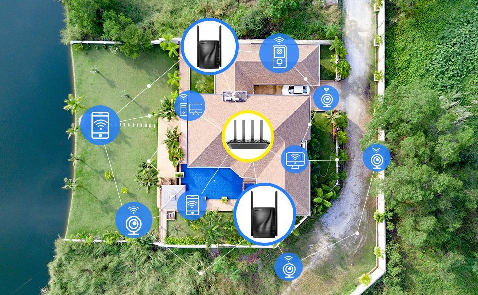 xtend Wifi Coverage on Dual-band. Boost internet WiFi signal to wider coverage up to 1292 sq.ft,optimize WiFi network transmission. AC2100 Wifi Extender helps you reduce the data transmission time and minimize the lag. This rockspace dual band wifi range extender also provides up to 300 Mbps for 2.4 GHz and 1734 Mbps performance on 5 GHz band. Wifi range extender - no more WiFi dead zones at home